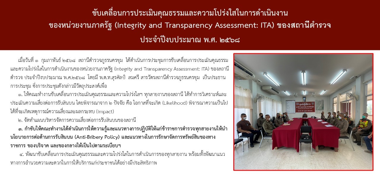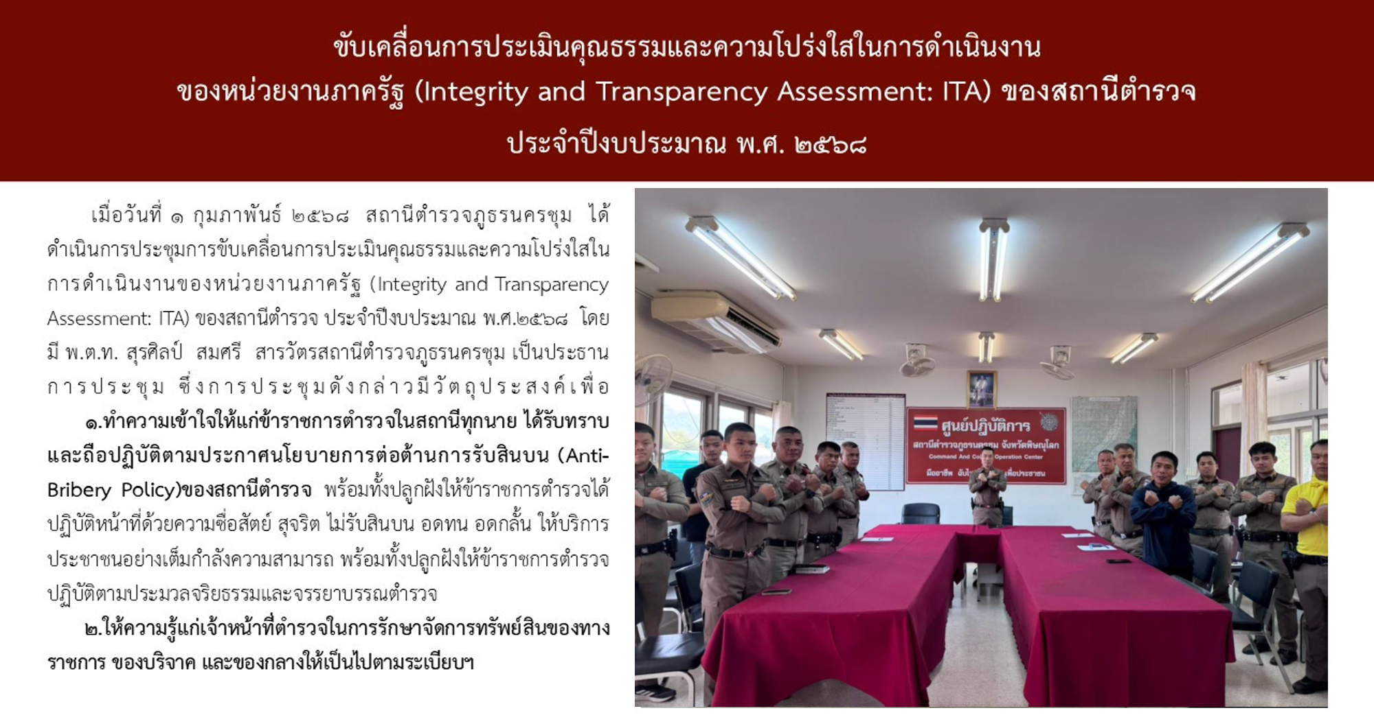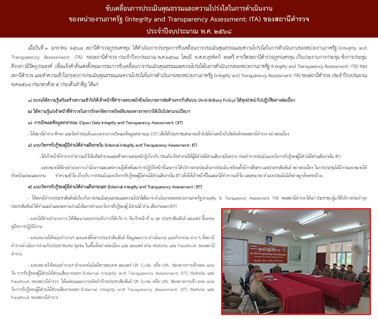 กิจกรรมชี้แจงการประเมินคุณธรรมและความโปร่งใสในการดำเนินงาน ของหน่วยงานภาครัฐ (ITA)ของสถานีตำรวจ ปี ๒๕๖๘